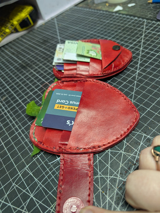 Handmade Mini Leather Strawberry Wallets - Full Grain Leather - Handmade in Canada