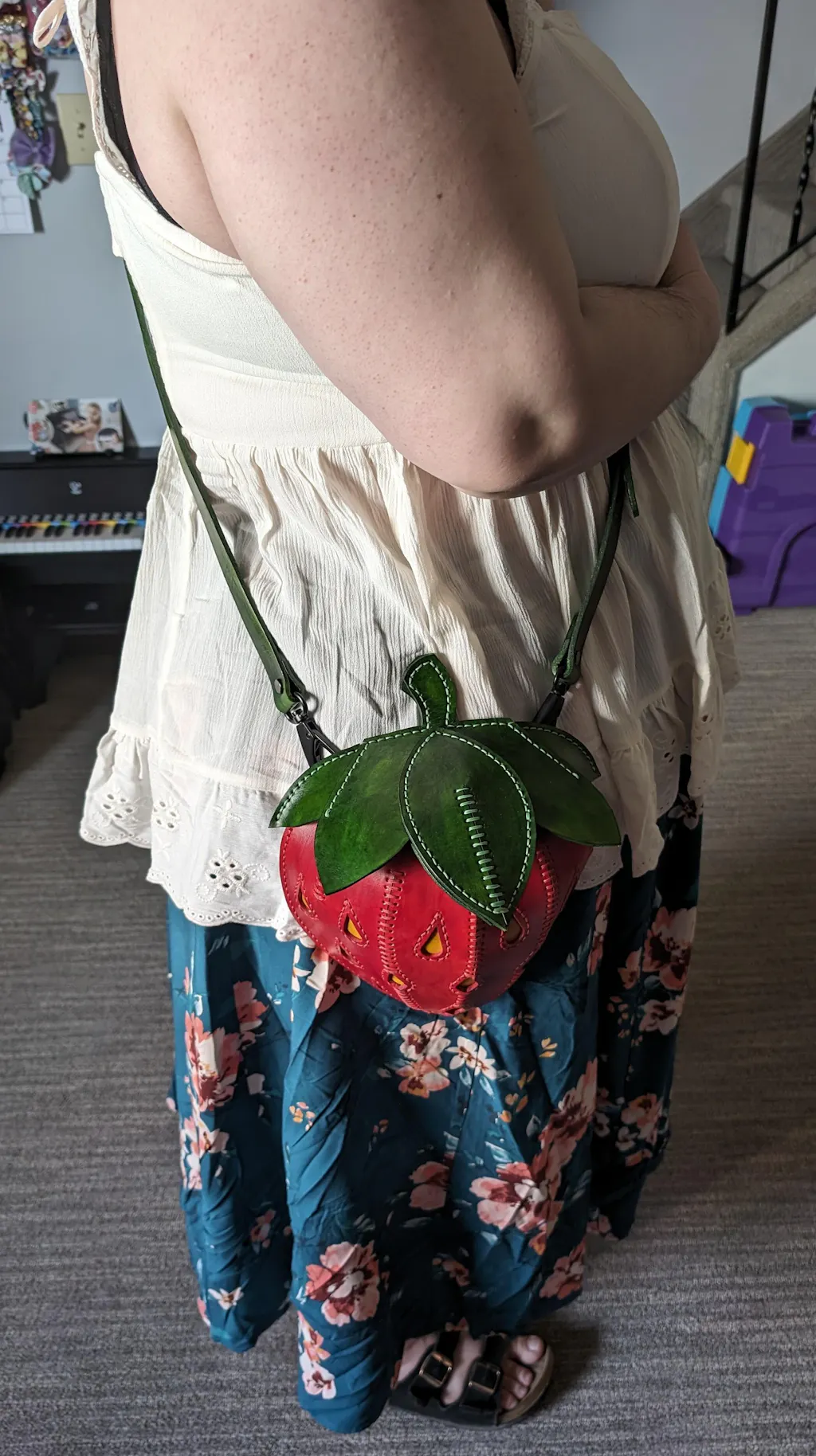 Such a beautiful piece! I have already gotten so many compliments on my pumpkin bag. I like that it comes with the removable shoulder strap. I would definitely keep an eye out for more whimsical accessories from Heather and her leathercraft shop!