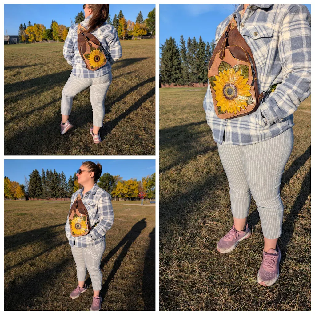 Absolutely phenomenal work. Being able to see the process of my bag from start to finish adds something so special to the finished product. I wear it with such pride and get compliments everytime I'm out. I'm a busy mom to a busy kid and the creator graciously helped me work out a shorter shoulder strap for those need-to-grab-quickly moments. I cannot recommend this artist enough. This bag will last for decades and I will be back for a wallet! (Or maybe another bag?)