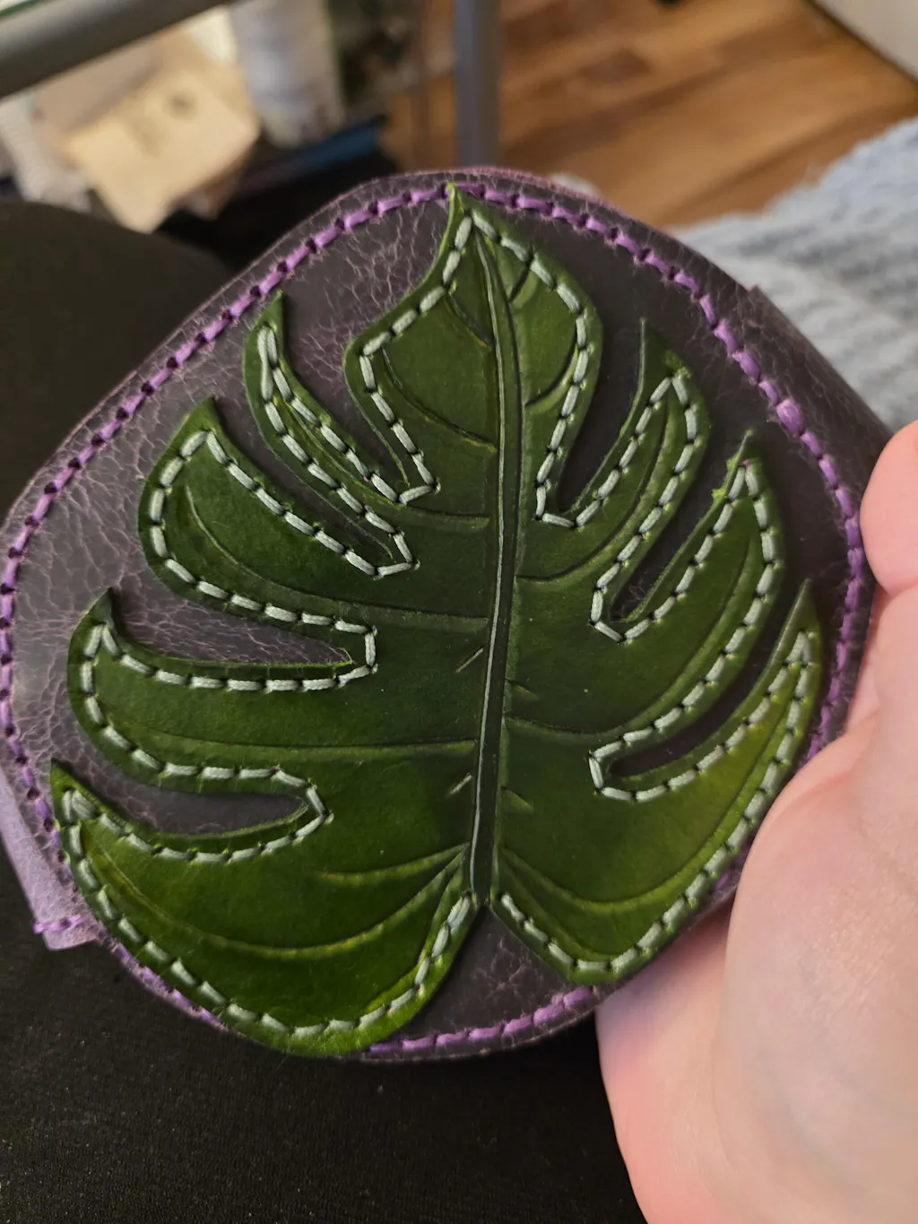 I love everything about my new bag. The size and functionality, the way it curves around my body, the quality of leather and hand stitching, and the amazing color coordination. You can see the time and care that went into creating this bag. It's no cookie cutter big box store bag. It's unique and beautiful. Thank you Heather at Leathercraft and chaos!
