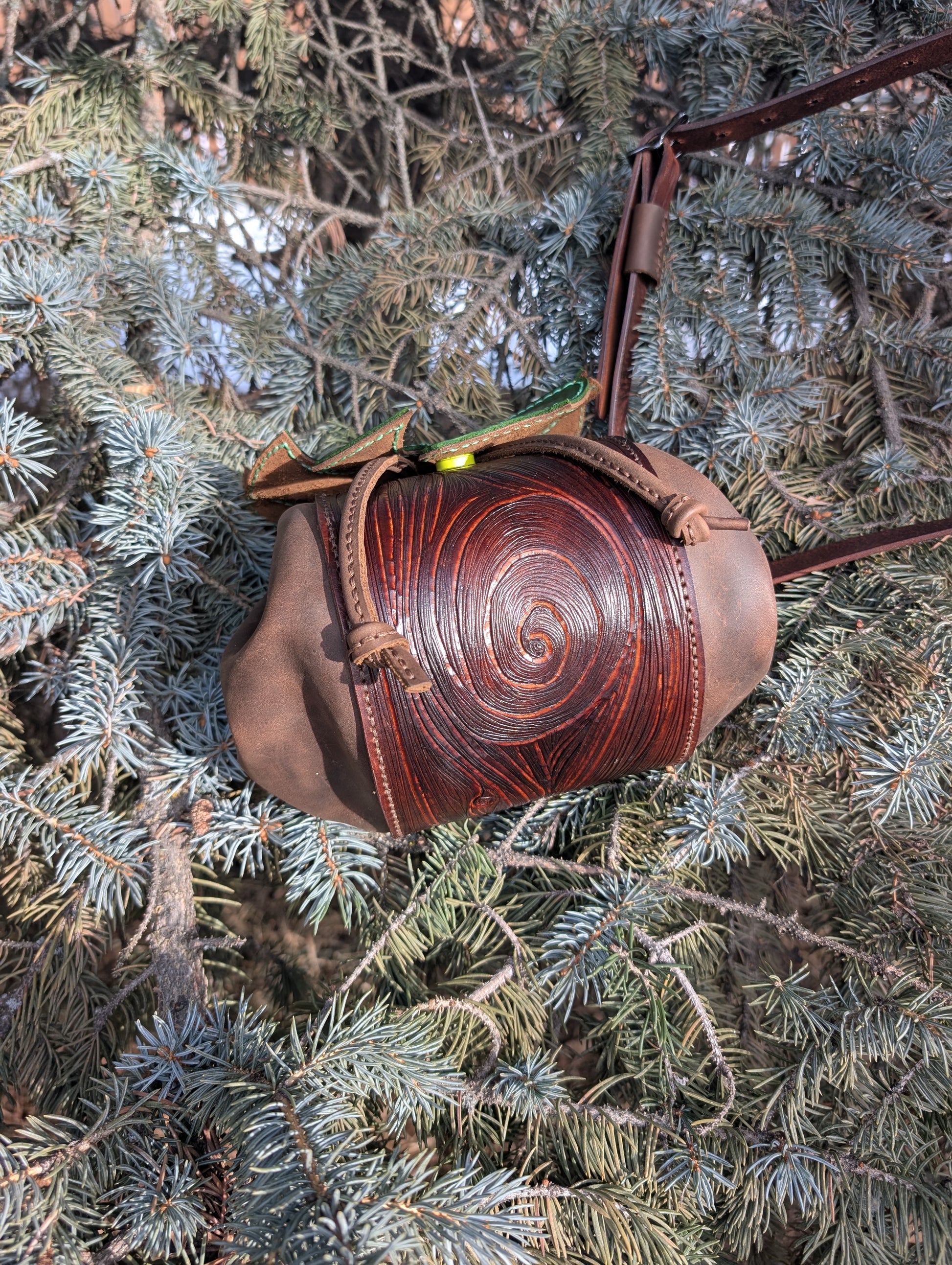 I'm incredibly excited to share the completion of this bag! The "wood grain" along the gusset AND the entire strap  is all completely free handed and tooled (carved) into the leather.