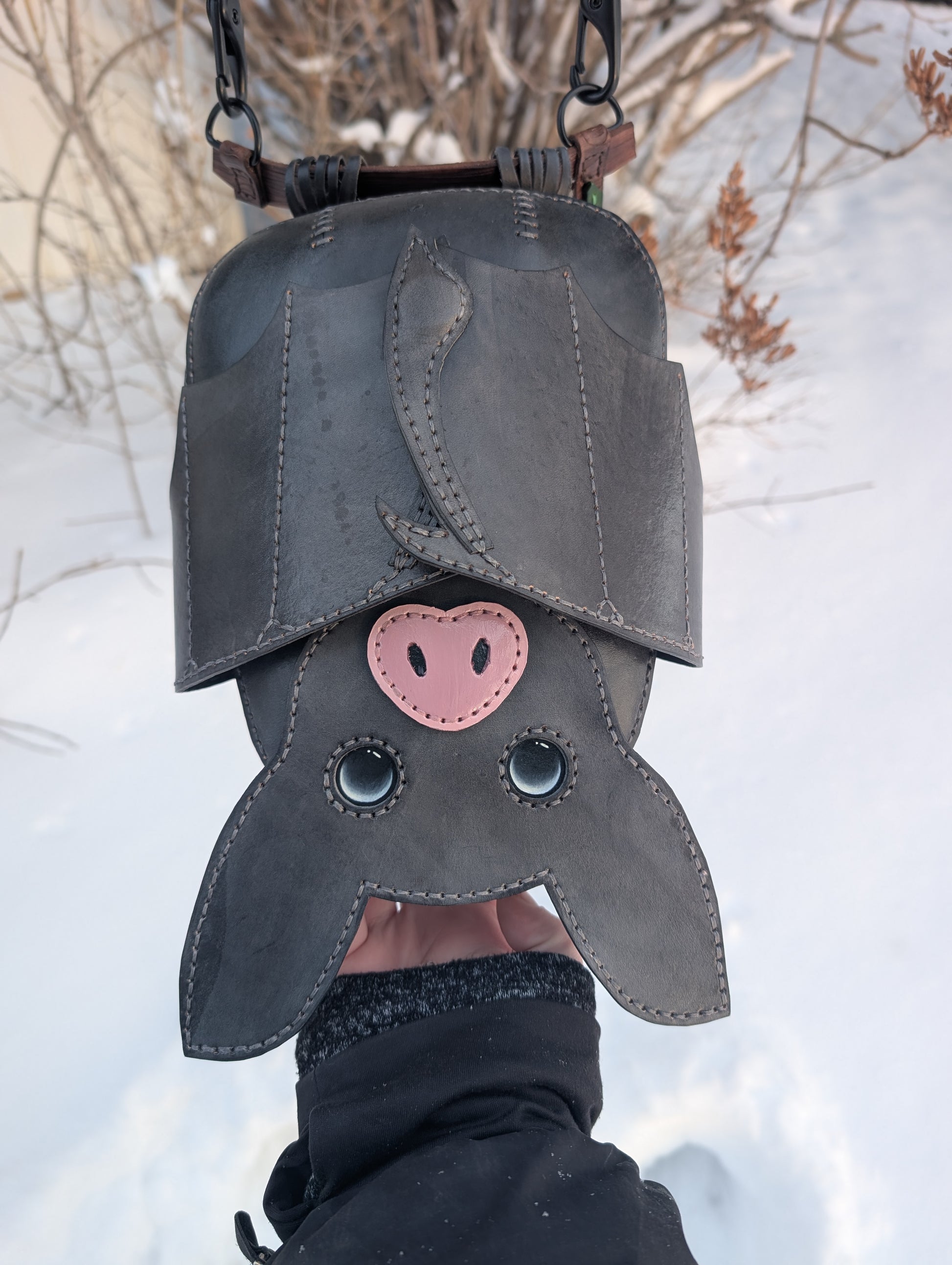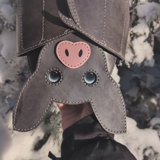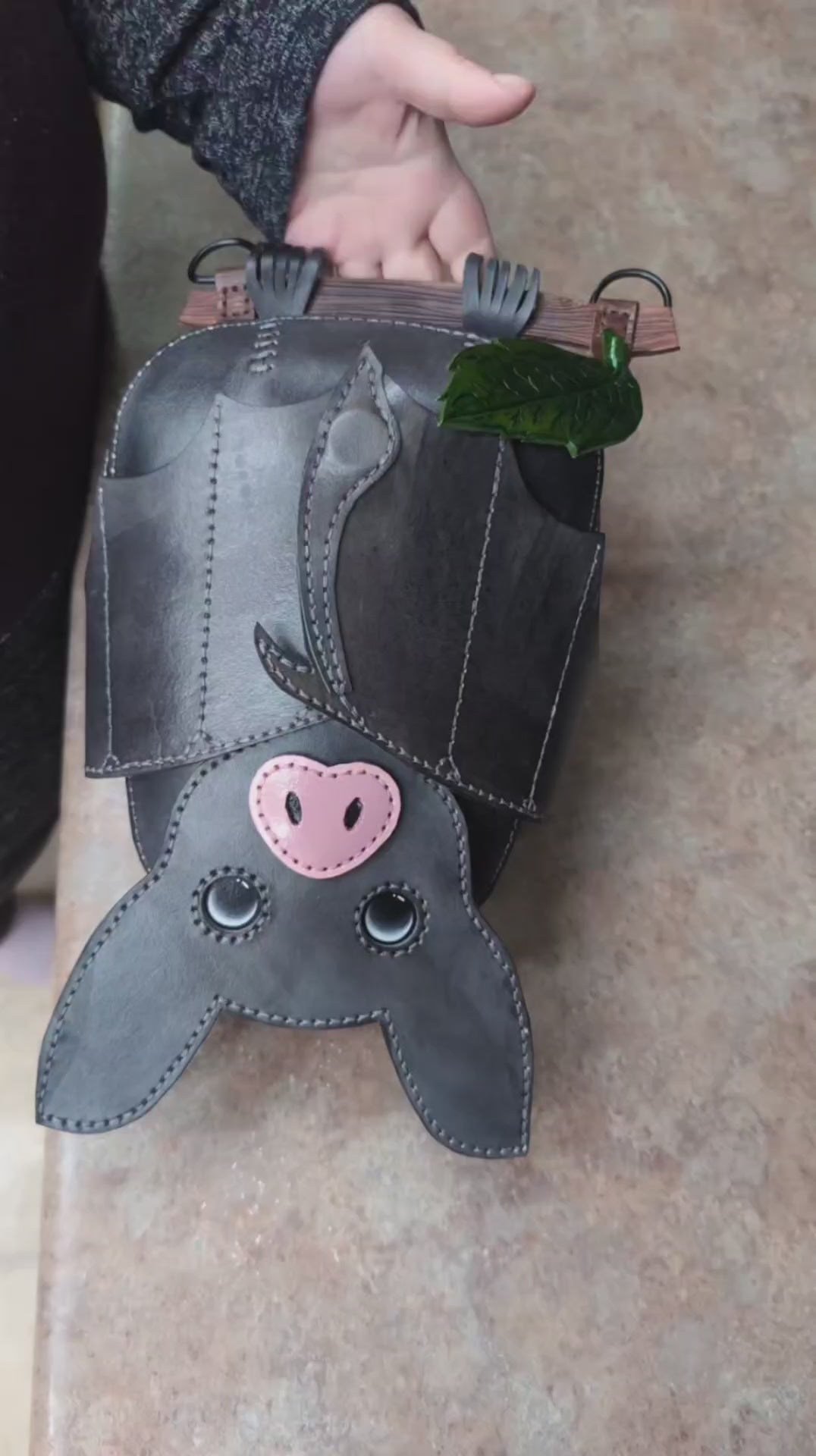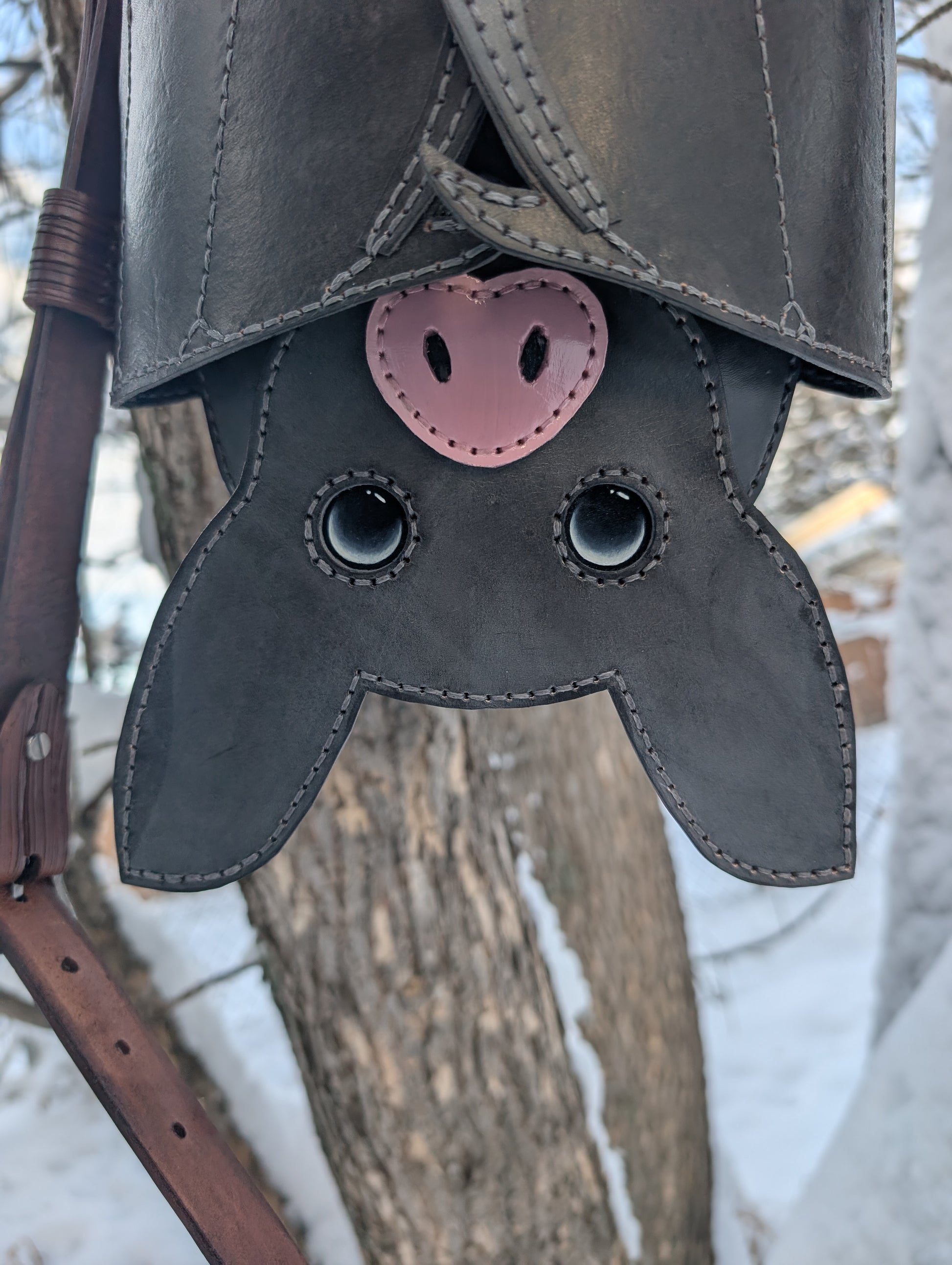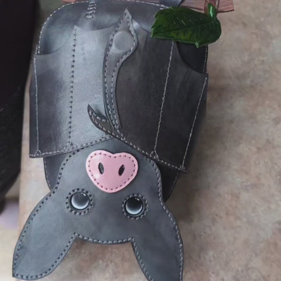 Handmade Full Grain Leather Bat Crossbody Purse - Handmade in Canada