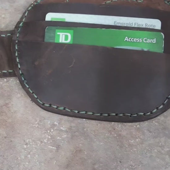 Handmade Full Grain Leather Monstera Wallet - Handmade in Canada (Brown version)
