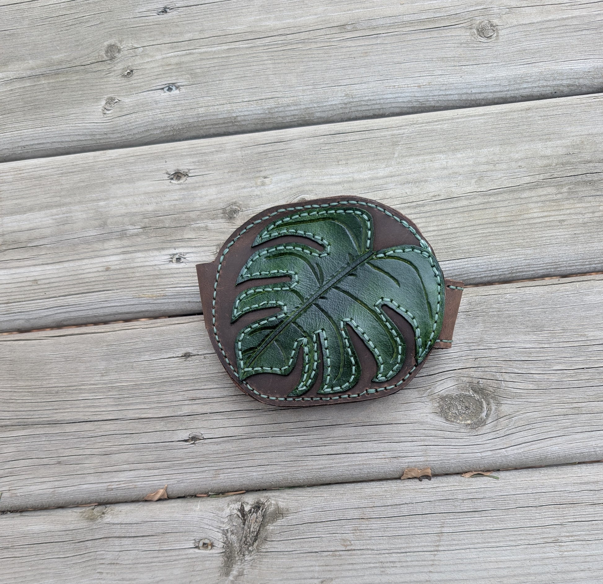 Handmade Full Grain Leather Monstera Wallet (Brown Version)